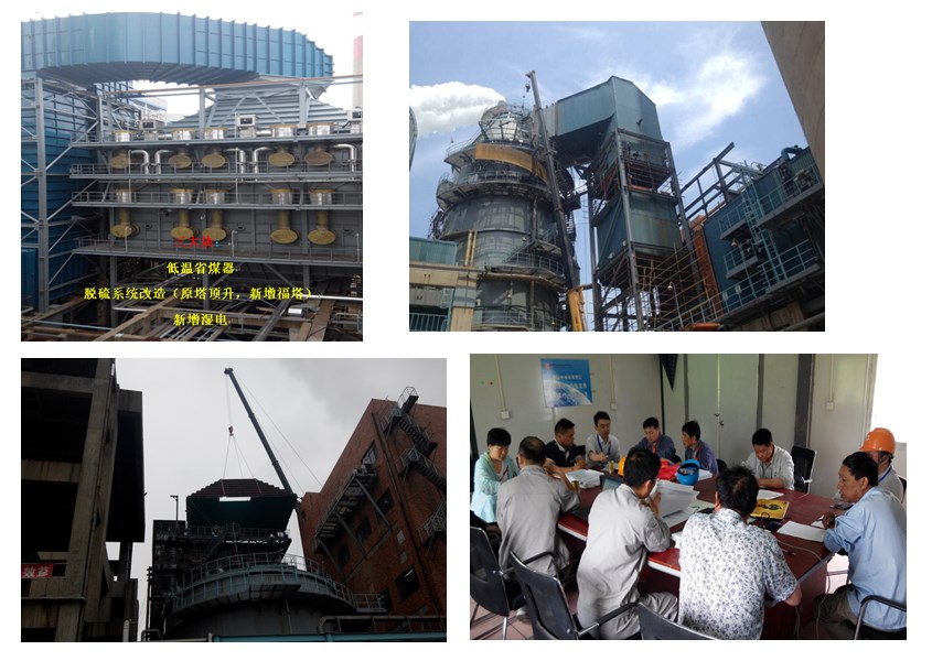 5、6號機組脫硫提效改造項目;包括新增低溫省煤器、原吸收塔增高、新建副漿液箱、新增濕式電除塵現場所必需的所有的建筑、安裝工作,以及新增設備的附屬系統安裝、設備基礎制作、與新設備沖突的舊設備、煙道等拆除、清理、恢復,設備安裝完畢后實驗檢驗、單體調試,配合試運直至168結束。