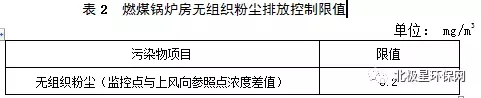 2、燃煤鍋爐配套堆場應采取封閉措施,燃煤鍋爐房無組織粉塵濃度執行表2的規定。
